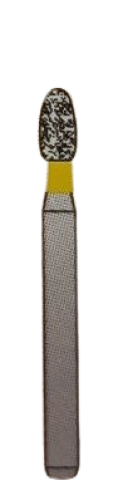 Рабочая часть бора имеет форму оливы поперечным сечением 1,8 мм и сверхмелкий алмазный абразив, гарантирующий безупречную шлифовку. Высокопрочный хвостовик надежно закрепляется в турбинном наконечнике, что исключает вибрации даже при вращении до 300 тысяч оборотов в минуту.