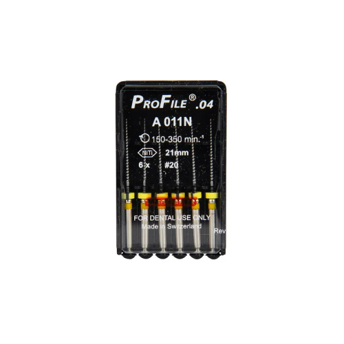 Машинные файлы ProFile 04 №20 от популярного бренда Dentsply применяются при эндодонтической обработке корневых каналов, когда важны точность, предсказуемость и анатомическая сохранность. Длина 21 мм делает их особенно удобными для работы в труднодоступных зонах ротовой полости и при узких профилях.
